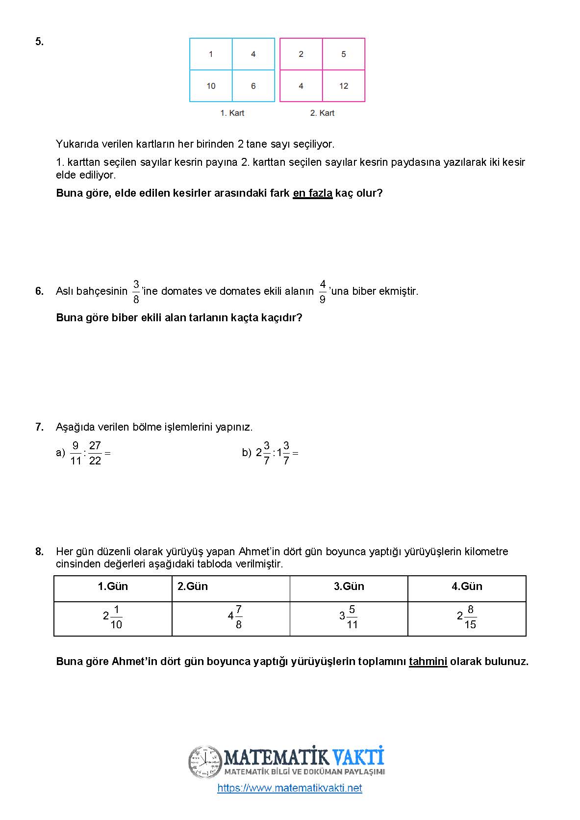 2024 – 2025 6.sınıf matematik 1.dönem 2.yazılı soruları MEB tarafından yayınlanan ortak sınav konu soru dağılım tablolarından senaryo 5’e göre hazırlanmış açık uçlu 8 soru içermektedir.