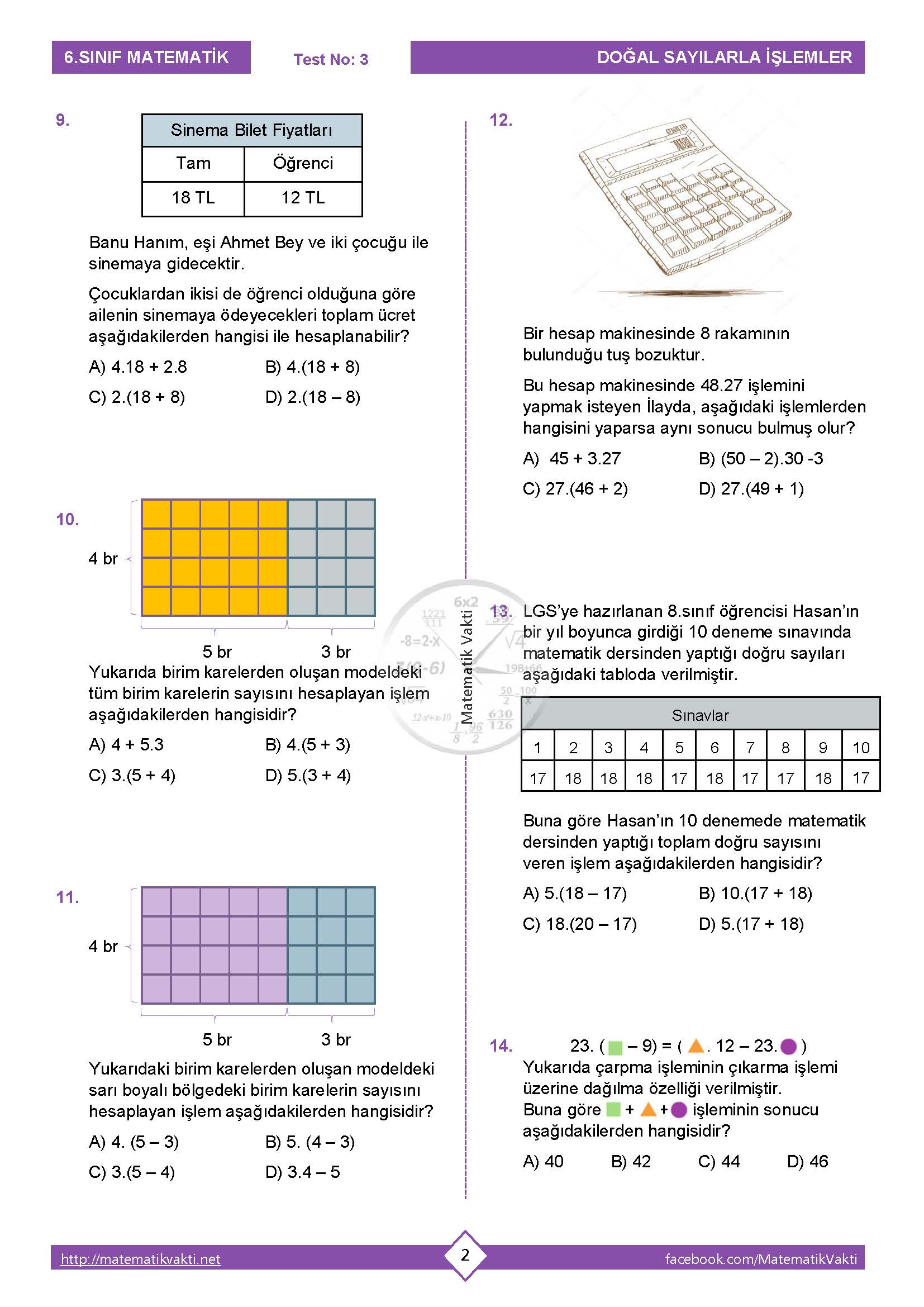 6.sınıf doğal sayılarda ortak çarpan parantezi ve dağılma özelliği testi pdf olarak aşağıdaki bağlantıdan indirebilirsiniz. Cevap anahtarı indirme bağlantısının hemen altındadır.