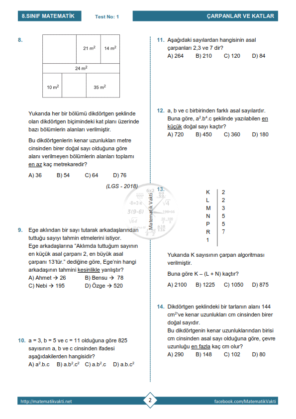 8.sınıf matematik çarpanlar ve katlar testini aşağıdaki bağlantıdan pdf olarak indirebilirsiniz. Cevap anahtarı indirme bağlantısının hemen altındadır.
