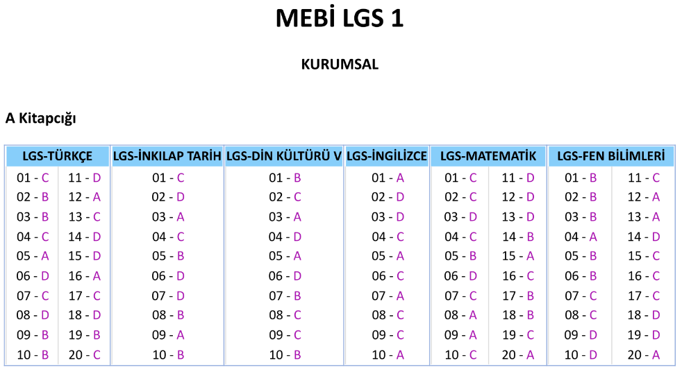 Cevap Anahtarı