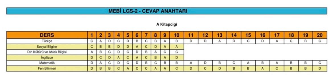 MEBİ LGS Deneme Sınavı 2 ve Cevap Anahtarı (2–8 Aralık 2025)